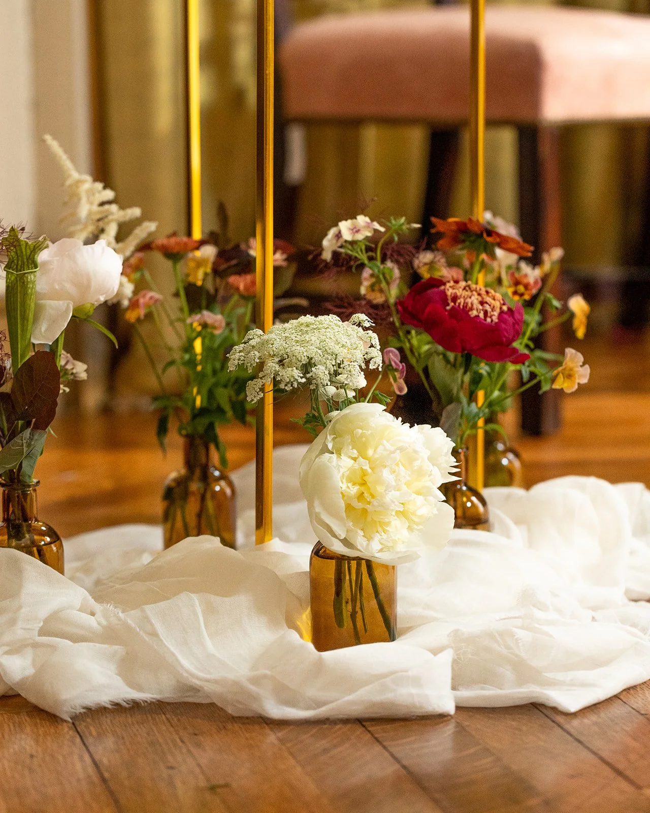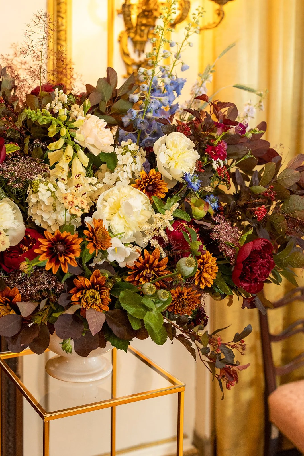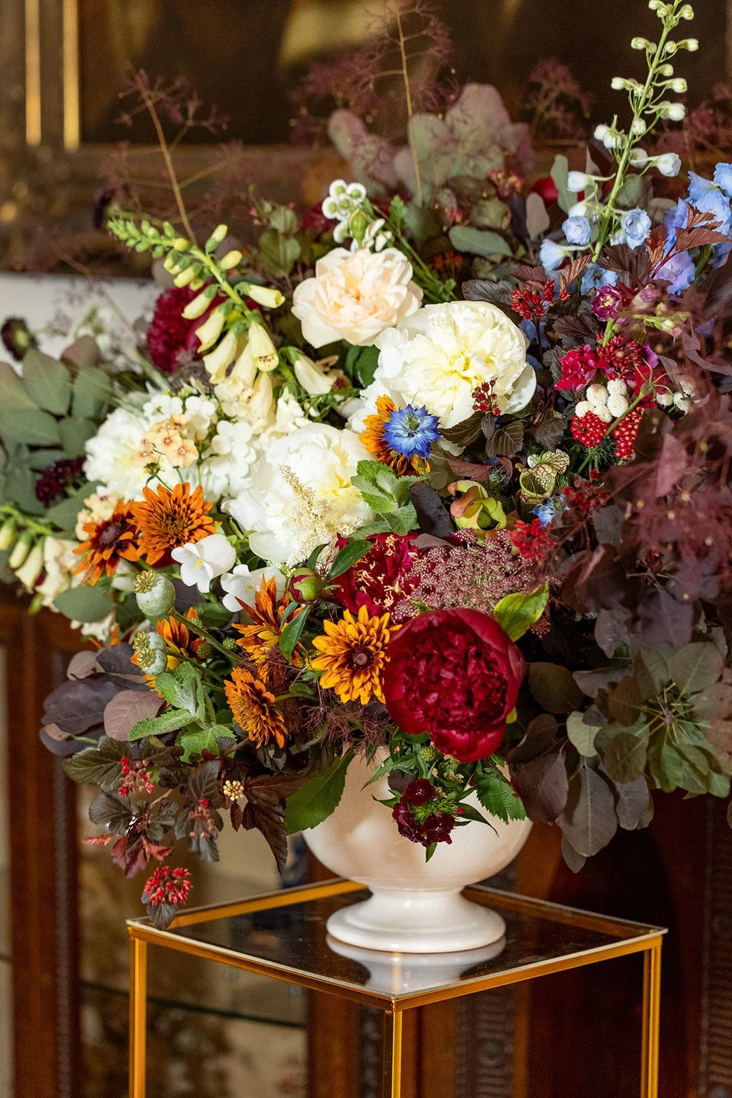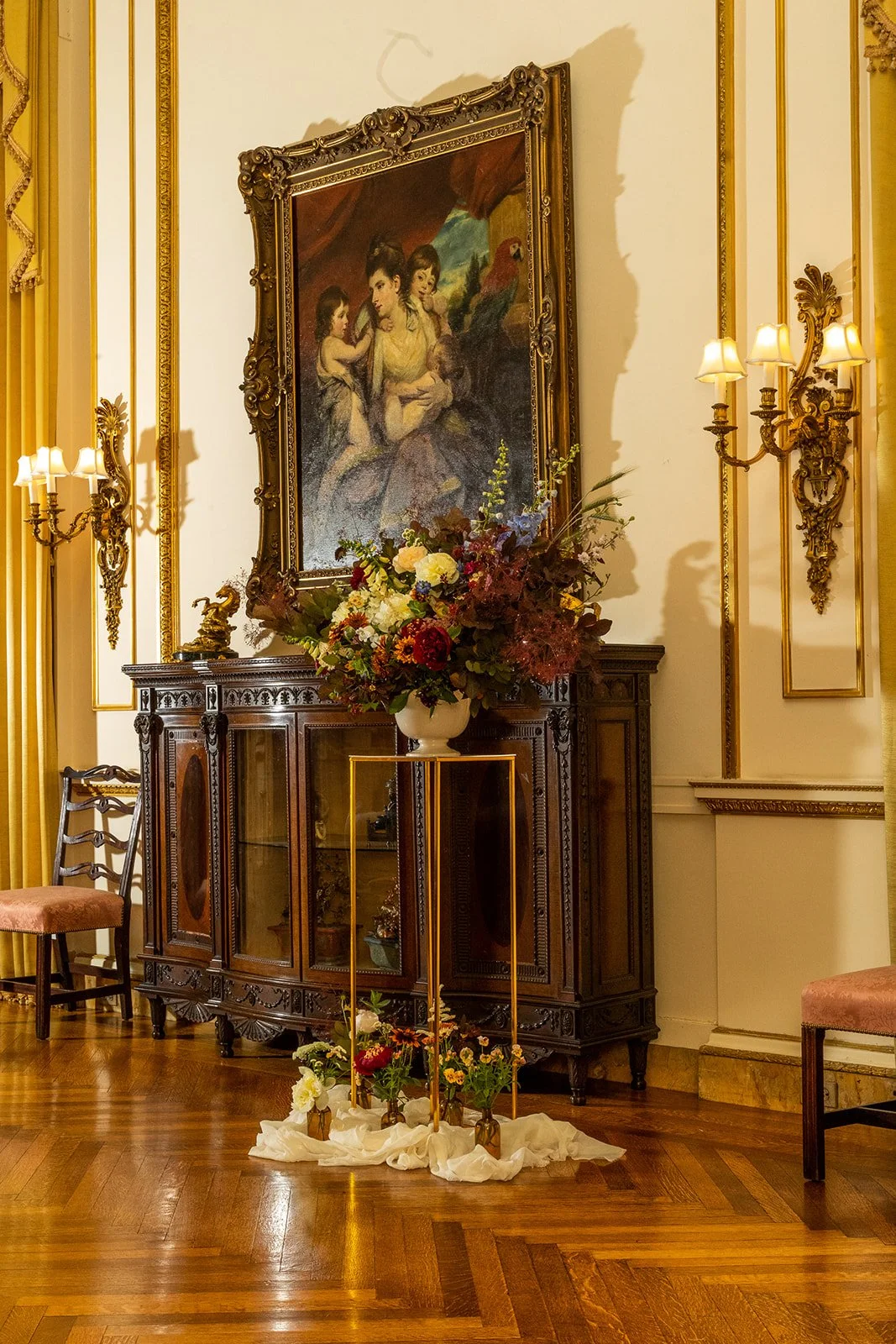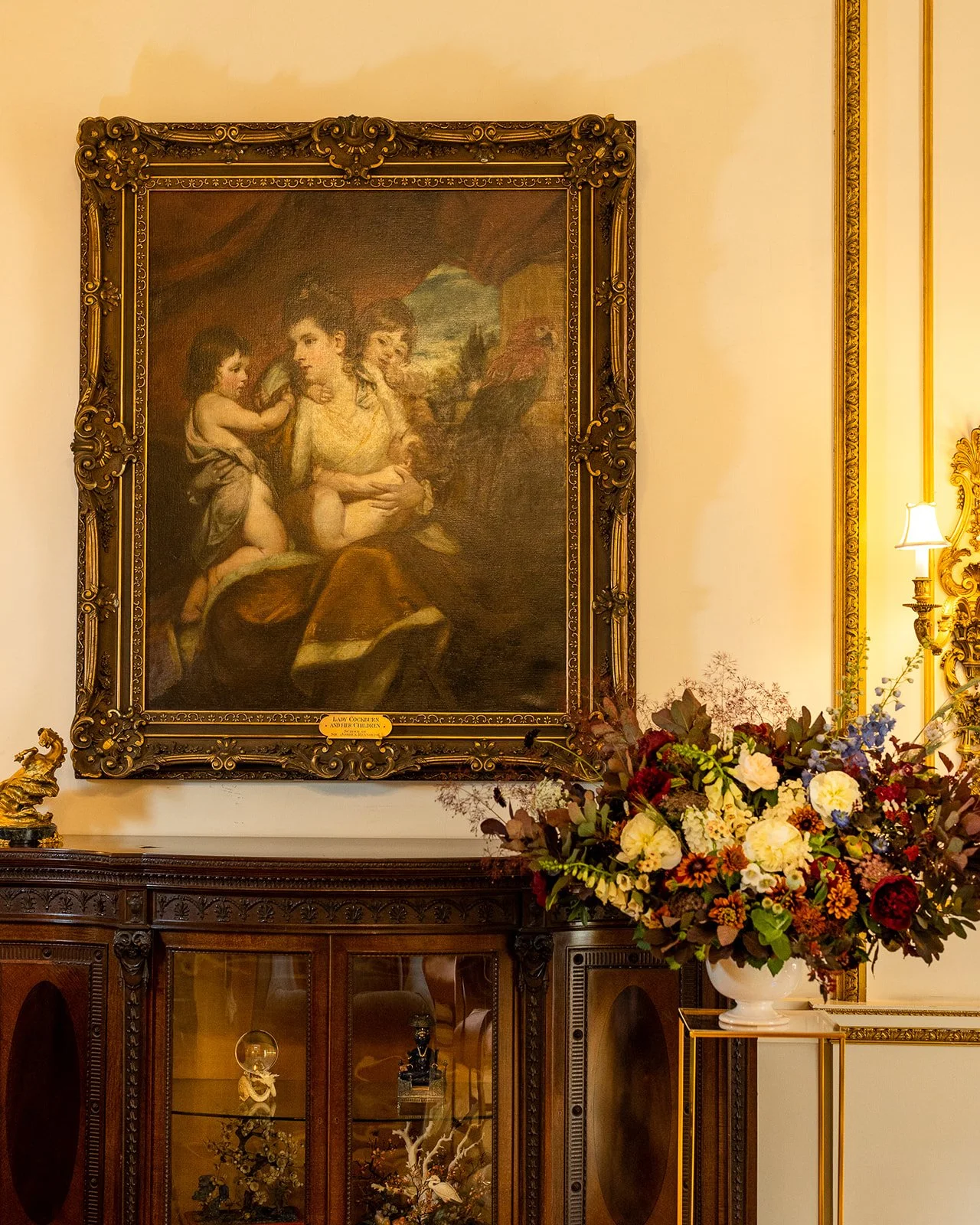 Florist’s inspiration: As many of us are mothers ourselves, we can only imagine what a scene it was for Lady Cockburn to sit for this portrait! Inspired by this depiction of motherhood and the energy of the children, we sought to bring this painting to life through flowers, but with our Little Acre twist: using exclusively locally sourced blooms. All of the flowers used in our design have been sourced nearby, in DC, Maryland, and Virginia. We’ve also drawn from the world of floriography and selected a few varieties specifically because of what they represent: haven/sanctuary (Queen Anne’s Lace), energy in action (chamomile), youth (foxglove), open heart and lightness (Larkspur), and virtue (mint).