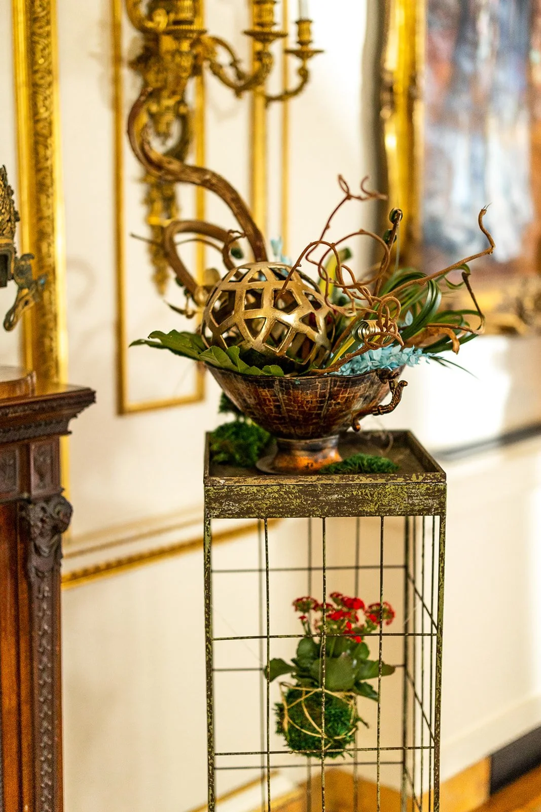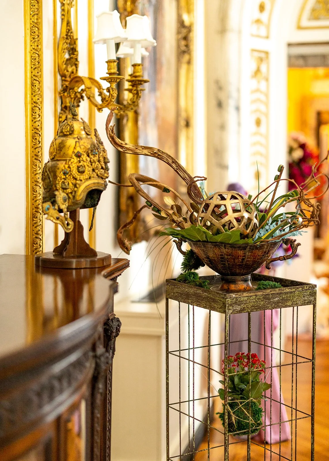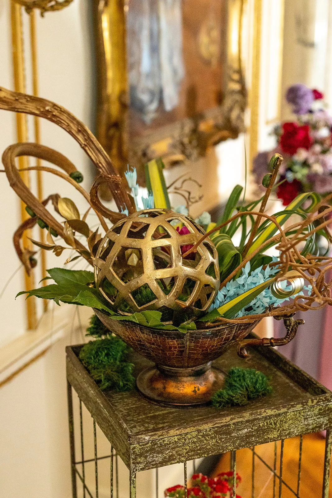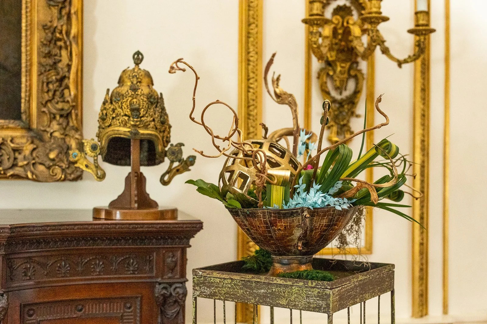 Florist’s inspiration: Warriors protect their land, their people, their homes, their culture. But warriors are not invincible. The metal helmet is a badge of honor for those heading into battle to represent their nation, but also a much-needed aid to protect a vital piece of human existence-- our brains and minds.